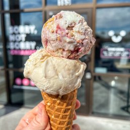 Customers rave about the quality and creativity of the flavors at Sorry, Not Sorry Creamery. Reviewers like Jennifer J. and Jessica D. praise the unique offerings and fresh taste of the ice cream. Nadine C. highlights the vegan options made with oat milk, while Rob G. commends the creamy texture and punchy flavors.
